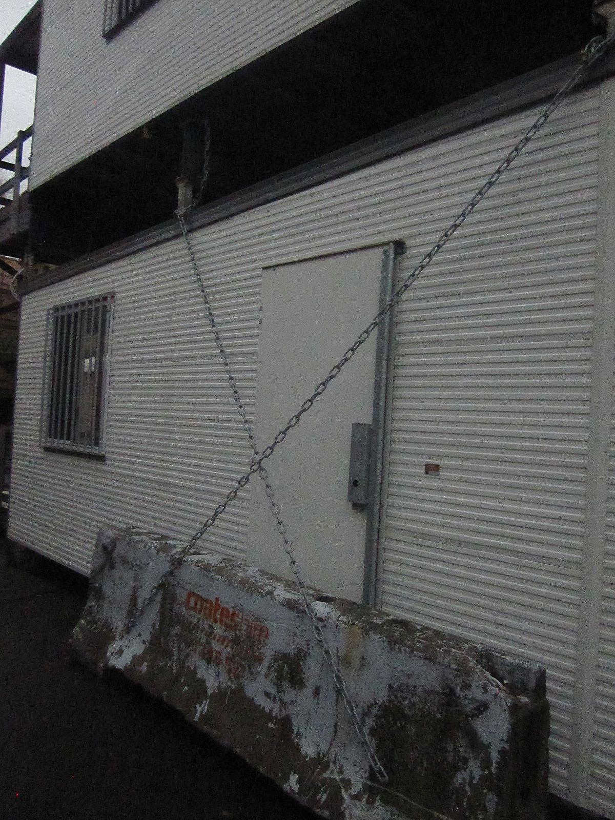 found timber, steel, rope, bag, concrete block.