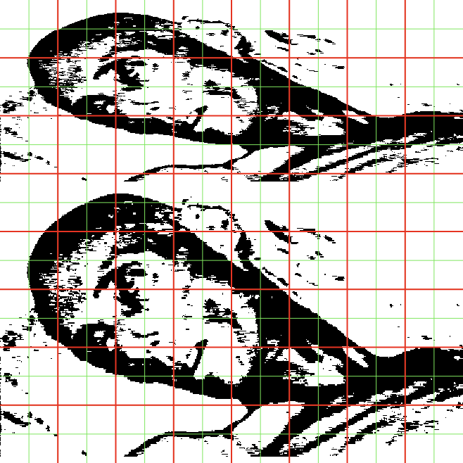 The gridded up version of Bryan I used as reference to draw the guide for the weave.